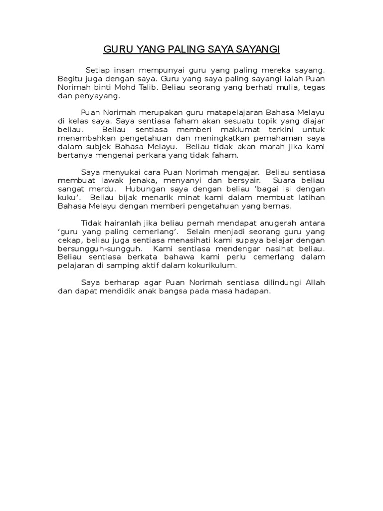 Contoh Karangan Tentang Soerang Yang Saya Sayang Dalam Bahasa Inggeris